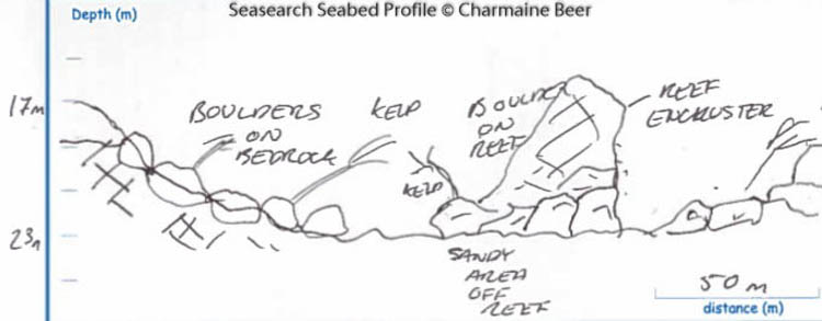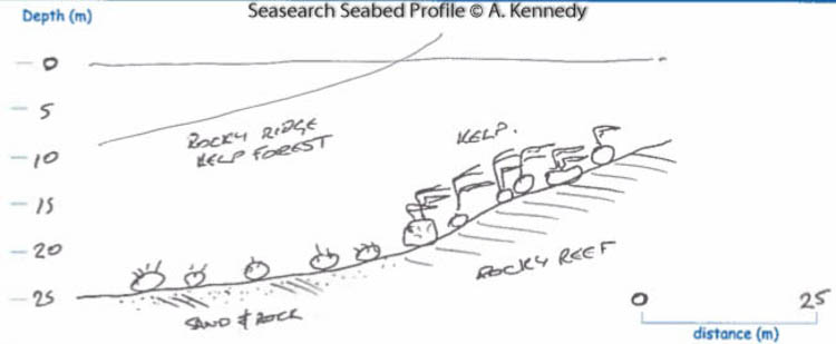 The vertical bedrock walls here are covered in kelp and a variety of seaweeds, whilst encrusting sponges are found amongst the caverns. The European spiny lobster Palinurus elephas, a Northern Ireland Priority Species has been recorded here a number of times recently by divers. Recent records from other sites around the County Antrim coast suggest that this species may be showing signs of recovery (or range expansion).