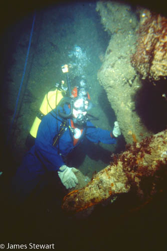 The pebbles, cobbles and boulders surrounding the wreck support a dense kelp (predominantly Laminaria hyperborea) community.