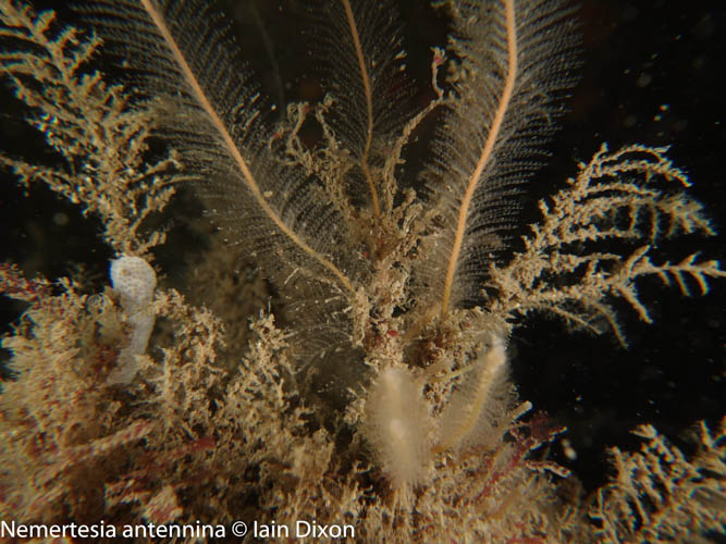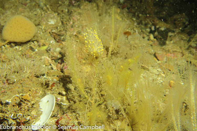 The site supports a diverse faunal community, which includes the sea beard hydroid Nemertesia antennina and Ross coral Pentapora foliacea. 18 species of nudibranch were recorded here in 2019 by the Rathlin Dive Expedition team, including the rare Knoutsodonta oblonga. Other species of interest recorded here include the imperial anemone Capnea sanguinea and the Bryer’s nut crab Ebalia tumefacta.