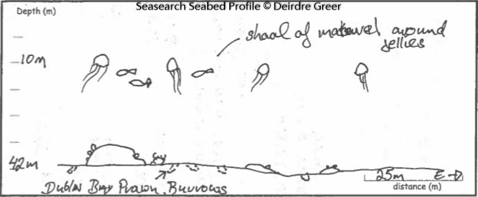 The wreck is well broken up and lies on a coarse, muddy, mixed sediment seabed with cobbles and pebbles. There are many scattered boulders.