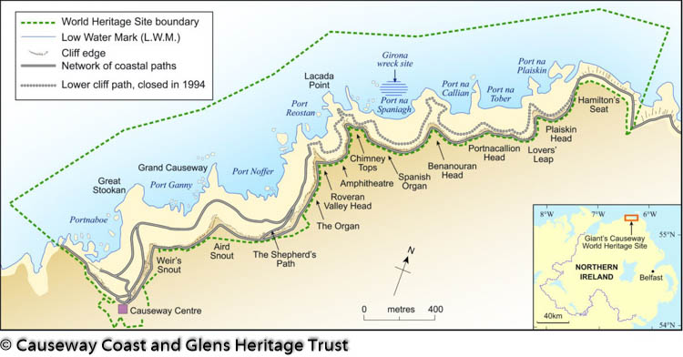 By boat from Portballintrae or Portrush, the site lies ~500m NE off Dunluce Castle.