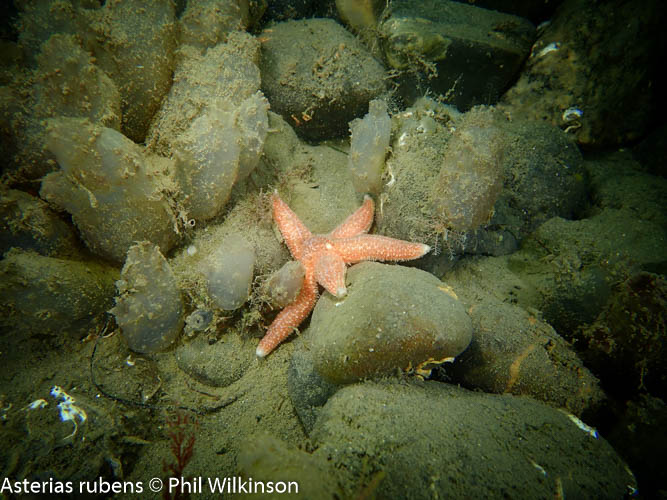 The site supports a diversity of crustaceans and fish species, including shanny, gobies and butterfish. Pairs of butterfish were filmed displaying mating behaviour at the site in October 2018 by Seasearch divers. The invasive leathery sea squirt Styela clava has been recorded here recently.
