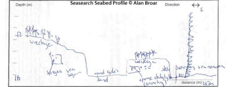 The wreckage is covered in dense kelp and mixed red algae. Sand gobies Pomatochistus minutus, the burrowing anemone Cerianthus lloydii and the slender sea pen Virgularia mirabilis (a Northern Ireland Priority Species) occur on the adjacent sandy seabed.