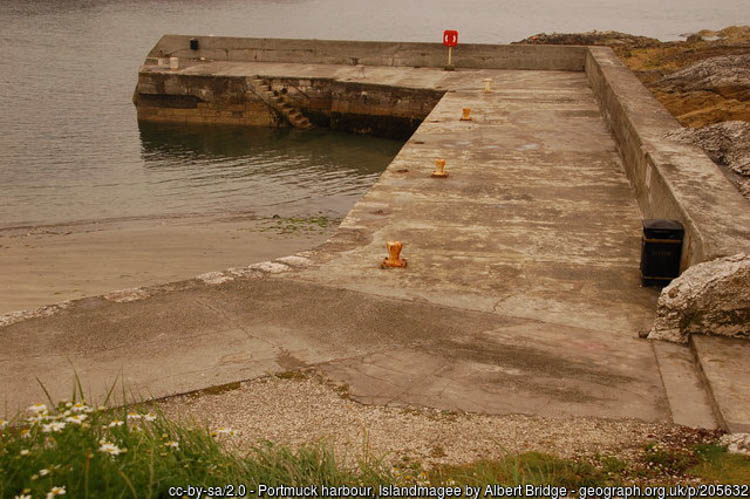 Portmuck Harbour provides free car parking, a slipway and public toilets. The pier is 25 metres long, 6.5 metres wide and in good condition.
