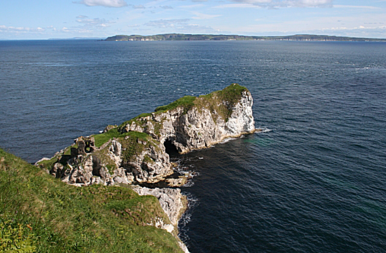 By boat from Ballycastle Harbour, the site lies beneath Kenbane Castle headland.