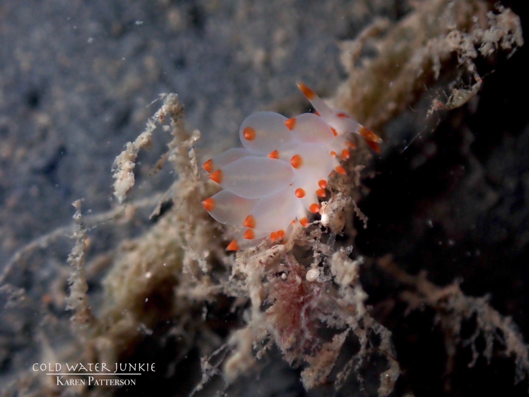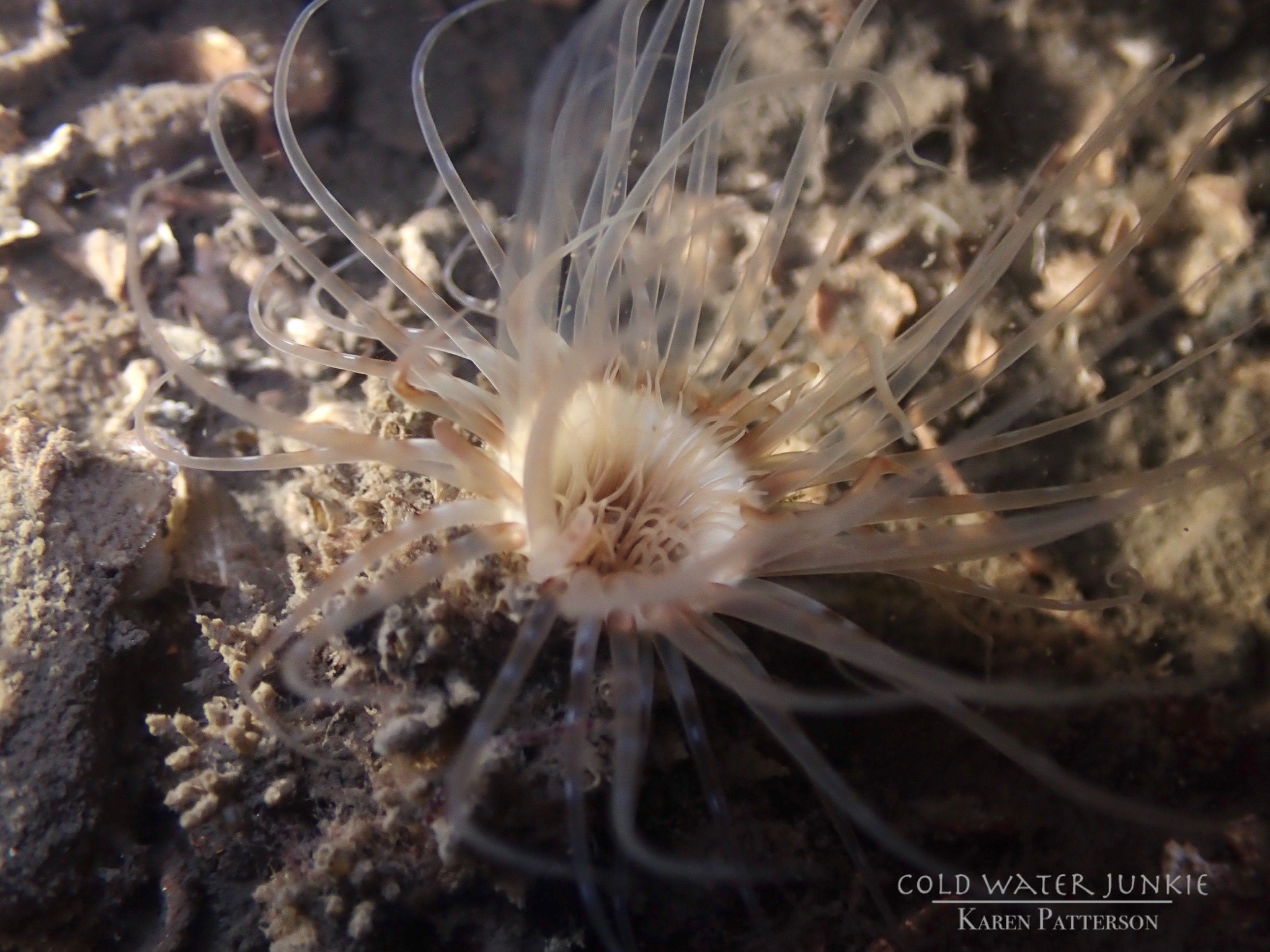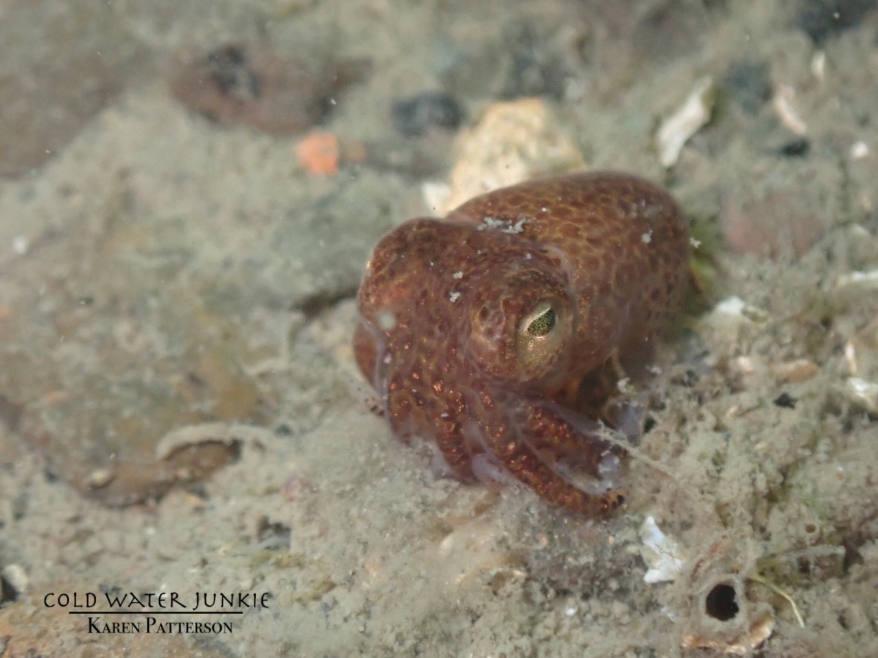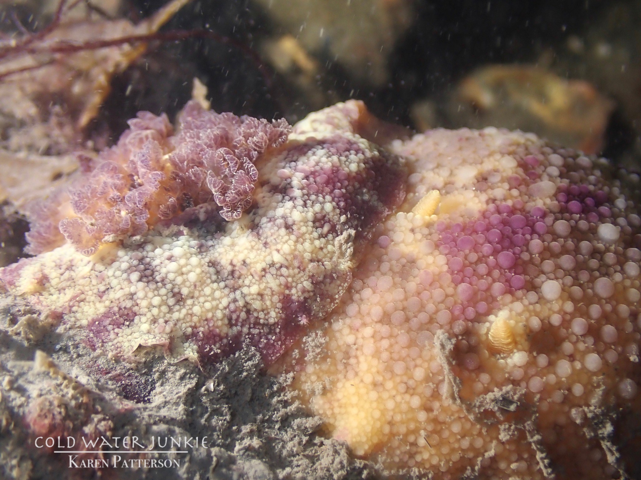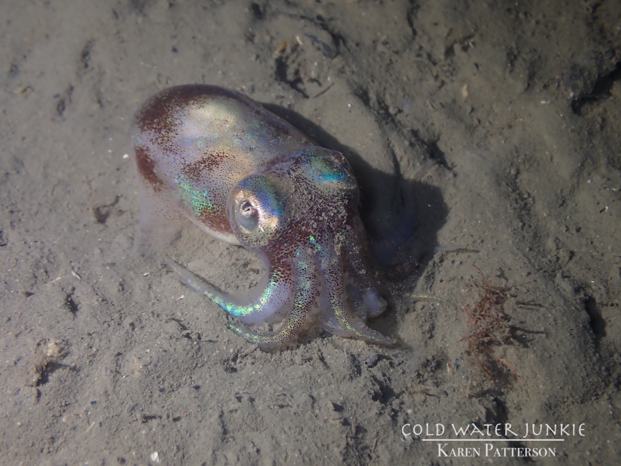 The wreck is covered in sea squirts and dead men’s fingers. Following the cable leading out to the wreck divers have recorded a variety of nudibranchs, sea snails Liparis sp. (a small clinging fish), tube anemones Cerianthus lloydii, rugose squat lobsters Munida rugosa and Atlantic bobtail squid Sepiola atlantica. The invasive Compass sea squirt Asterocarpa humilis has recently been recorded from Ringhaddy.