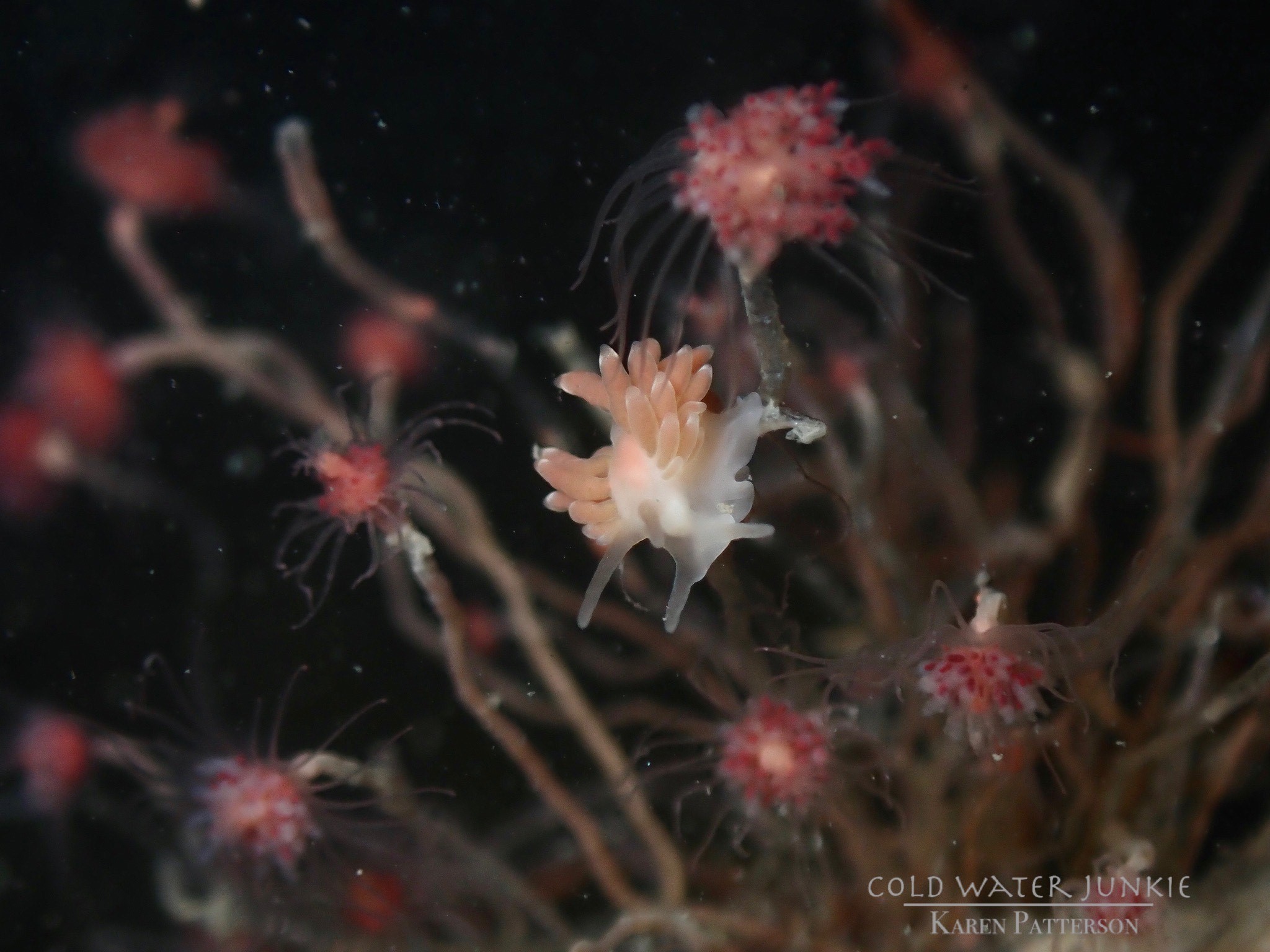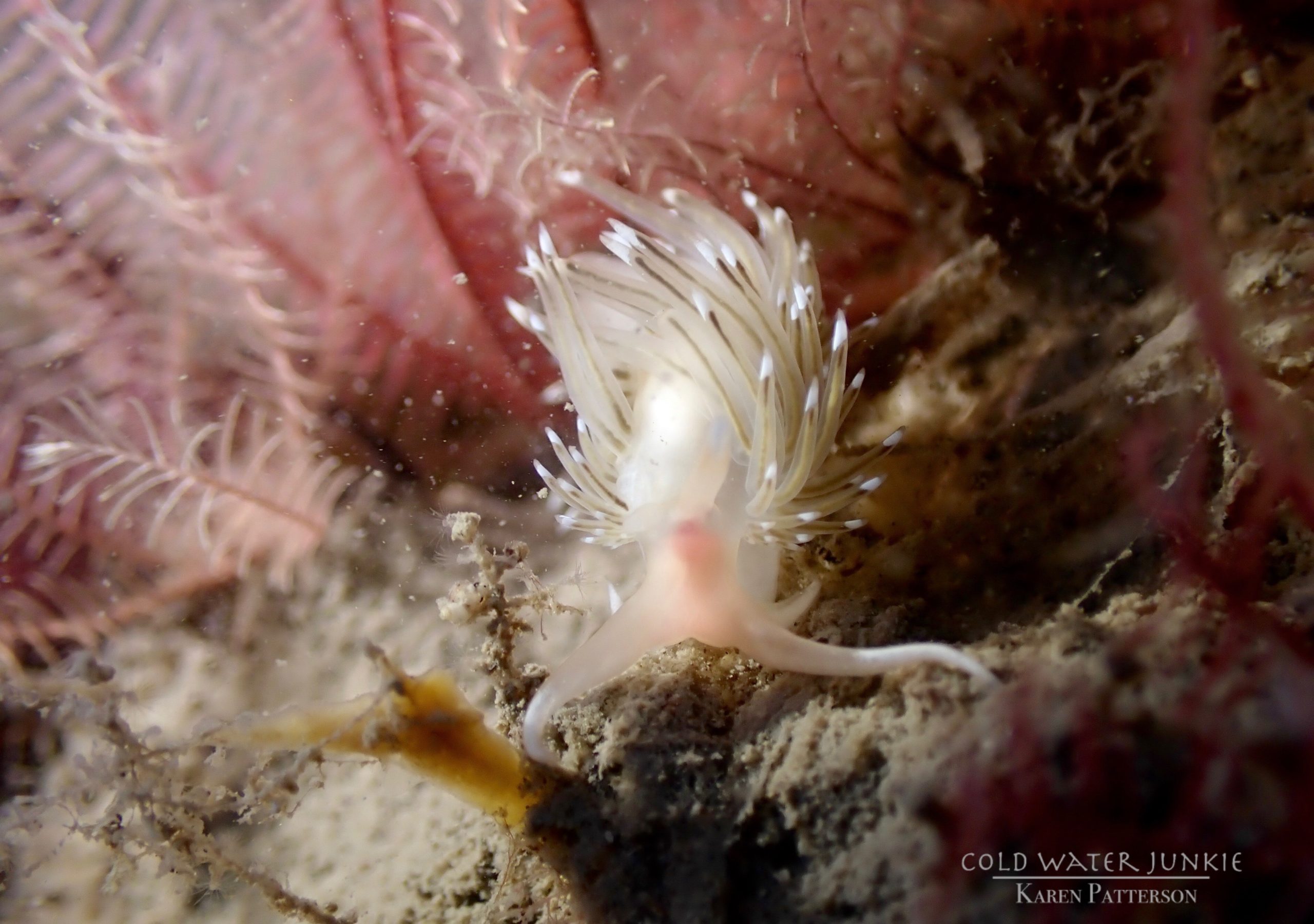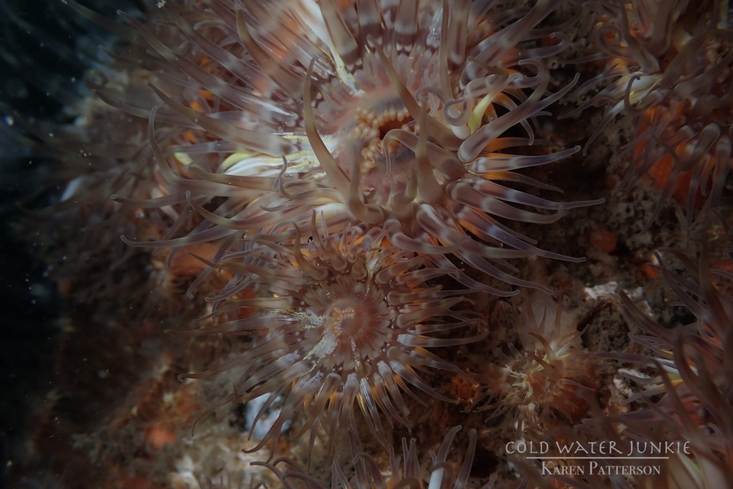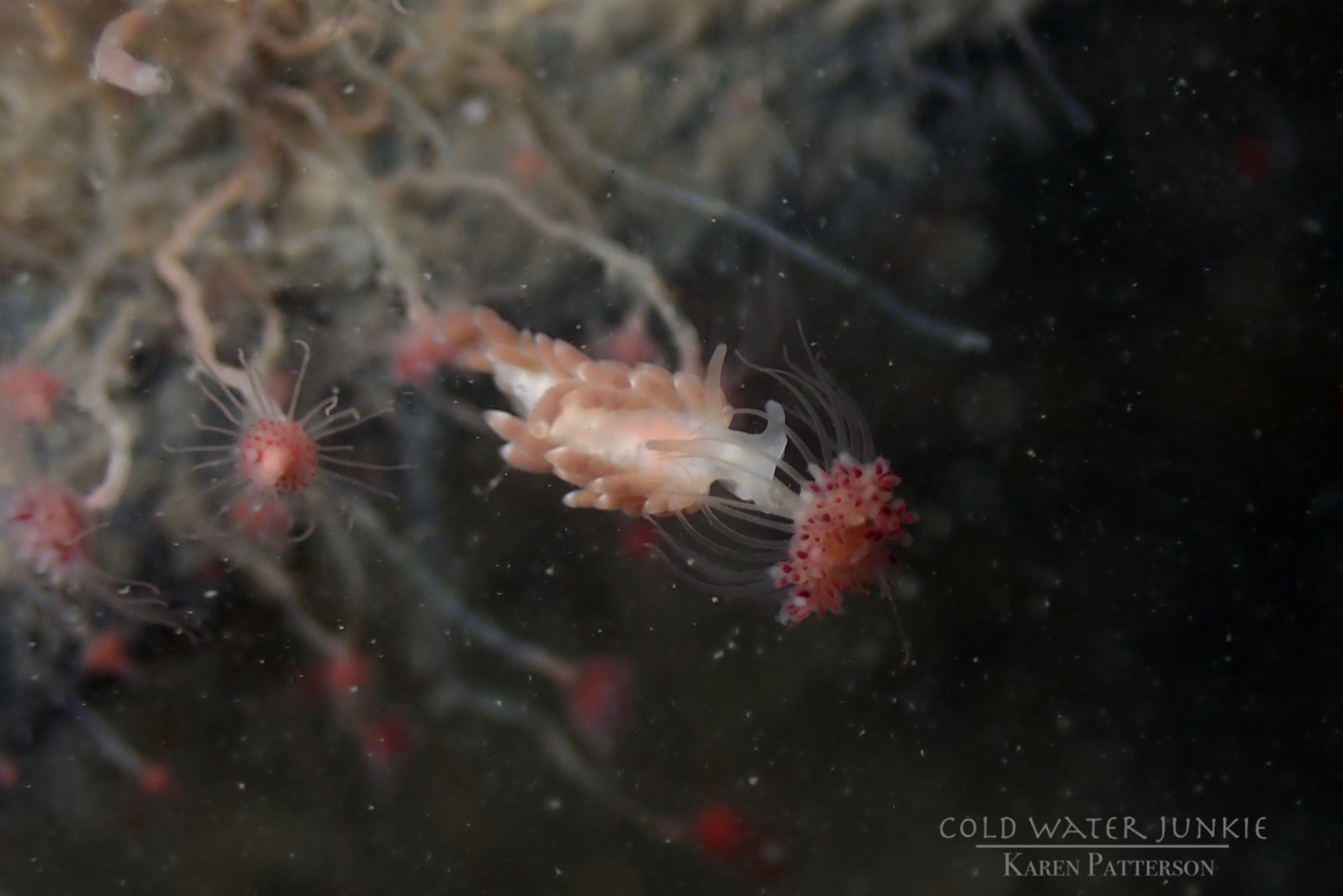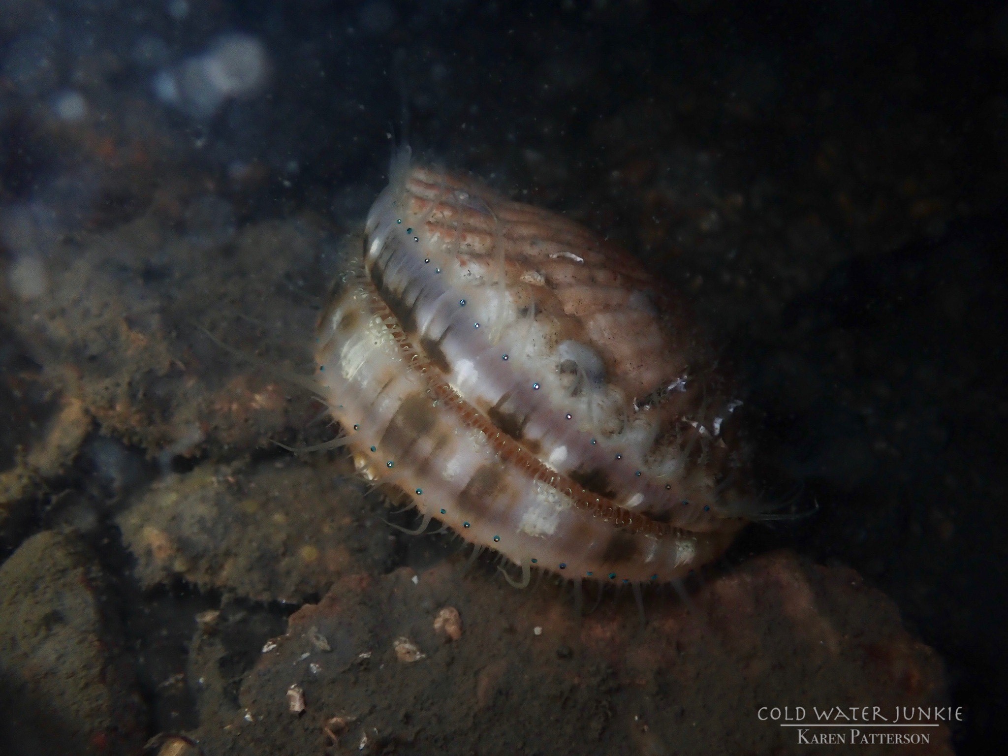 The wreck is covered in sea squirts and dead men’s fingers. Following the cable leading out to the wreck divers have recorded a variety of nudibranchs, sea snails Liparis sp. (a small clinging fish), tube anemones Cerianthus lloydii, rugose squat lobsters Munida rugosa and Atlantic bobtail squid Sepiola atlantica. The invasive Compass sea squirt Asterocarpa humilis has recently been recorded from Ringhaddy.