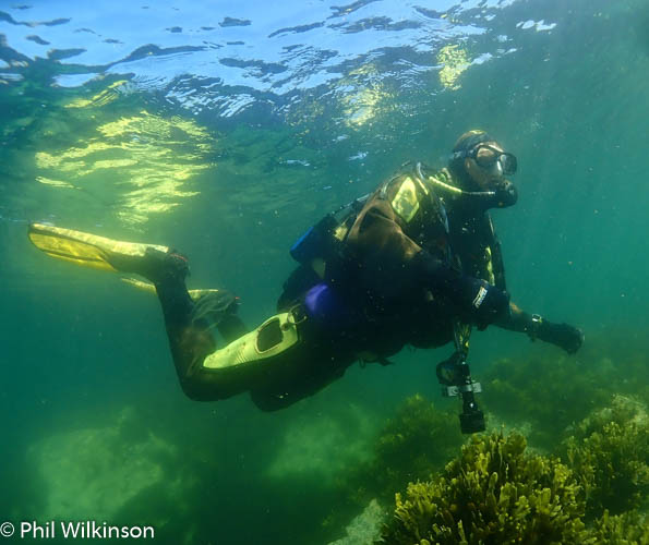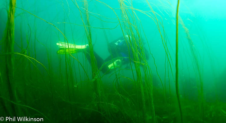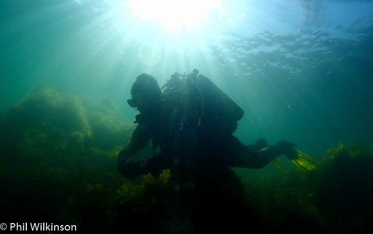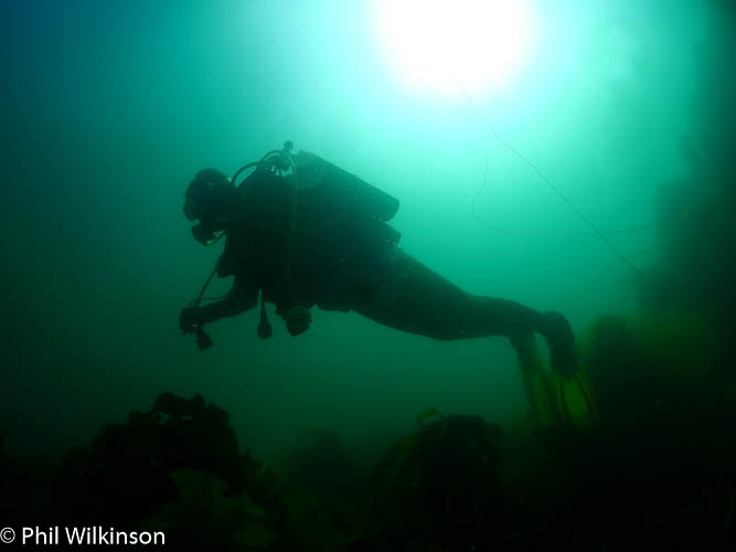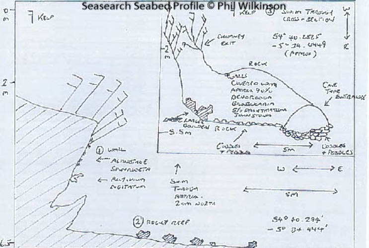 A really interesting and diverse shore dive. Finning out east to ‘the point’ there are boulders, rock, sand and mixed seaweed. Heading north from the entry point (at 54.671221, -05.574086) there is a lovely wall at a slightly acute angle towards the seabed. At the top of this wall is kelp. Further down there are numerous sea squirts, soft corals, anemones and crustaceans such as velvet swimming crabs. Finning north, there are further points of interest with smaller walls and a seabed that is generally sandy with large and smaller pebbles. At ~54.671540. -05.574155 there is a swim through. This can be difficult to find even in good visibility. Look out for a sandy seabed with large and smaller pebbles and sea spaghetti dipping into a dark cave entrance. The entrance is ~1m across and ~1m high. The main ‘chamber’ of the swim through is ~1.5 wide and 1.8m high. The swim through walls and ceiling are covered in highly abundant baked bean sea squirts, giving the main chamber a reddish glow under torch light. There are also crustaceans such as spiny squat lobsters and velvet swimming crabs. The swim through is ~5m in length at a linear depth of ~6m. At the end of the swim through there are silty boulders and a chimney (vertical) exit to ~2m of fairly open kelp. The swim through has quite a silty seabed with smaller pebbles and sand. If you are the first diver there, it is fantastic, however the visibility quickly deteriorates due to finning and disturbance of the silt. The remainder of the dive is normally heading south to the point and then east to a slippery exit over the boulders at 54.670990, -05.575001 (from my experience, a good time to remember to keep your mask on and reg in, until you’re on dry land!)