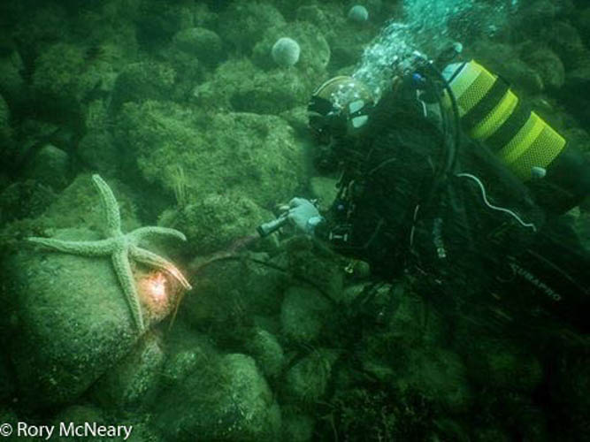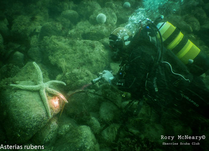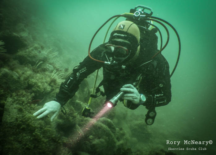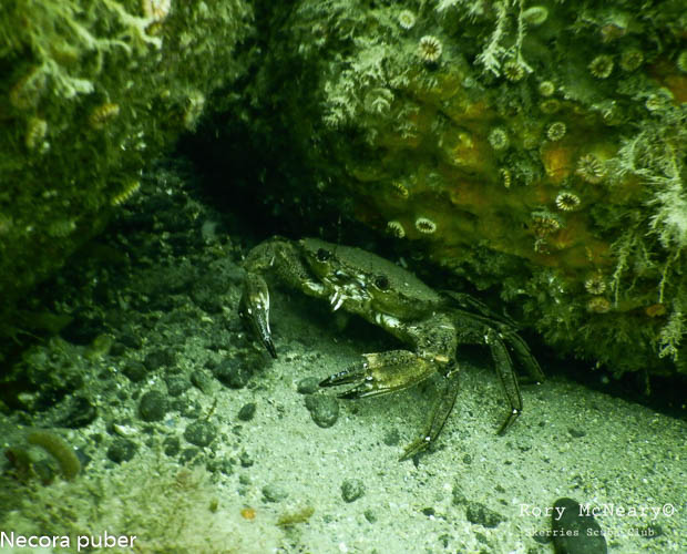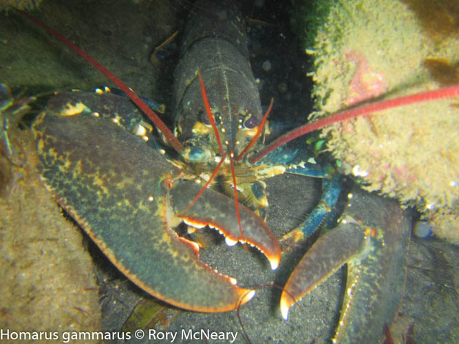 Seabed community dominated by kelp and mixed red algae and a diversity of fish including wrasse and the reticulated dragonet Callionymus reticulatus. The rare nudibranch (sea slug) Crimora papillata has been recorded at the site previously, as well as the crawfish / spiny lobster Palinurus elephas, a Northern Ireland Priority Species which based on increasing records from divers in the area, is either showing signs of recovery or range expansion.