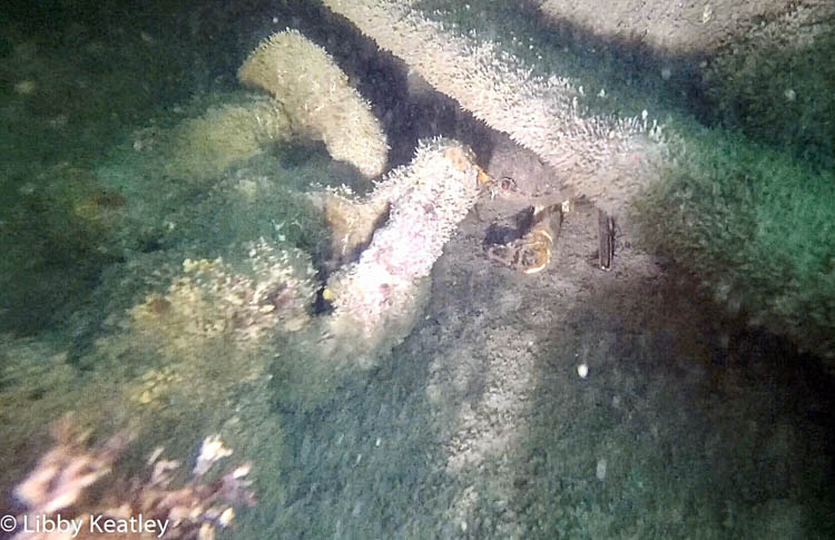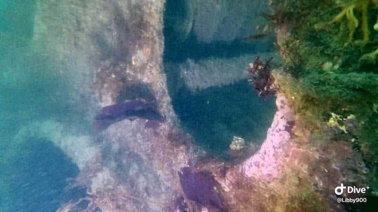Wrasse, crabs, sea urchins, sponges and sea anemones are all found on the wreck.