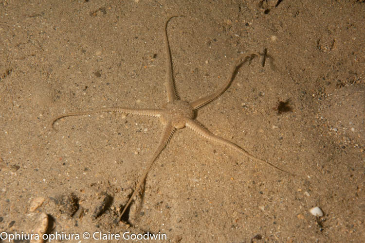 The upper section of the bedrock wall is predominantly kelp forest and mixed sea weed. Byozoans and hydroids are visible on the kelp. As you delve deeper, short animal turf becomes apparent, with sea urchins and seasquirts becoming more common. The rarely recorded red encrusting sponge, Antho granditoxa, a Northern Ireland Priority Species has been recorded close to the site.