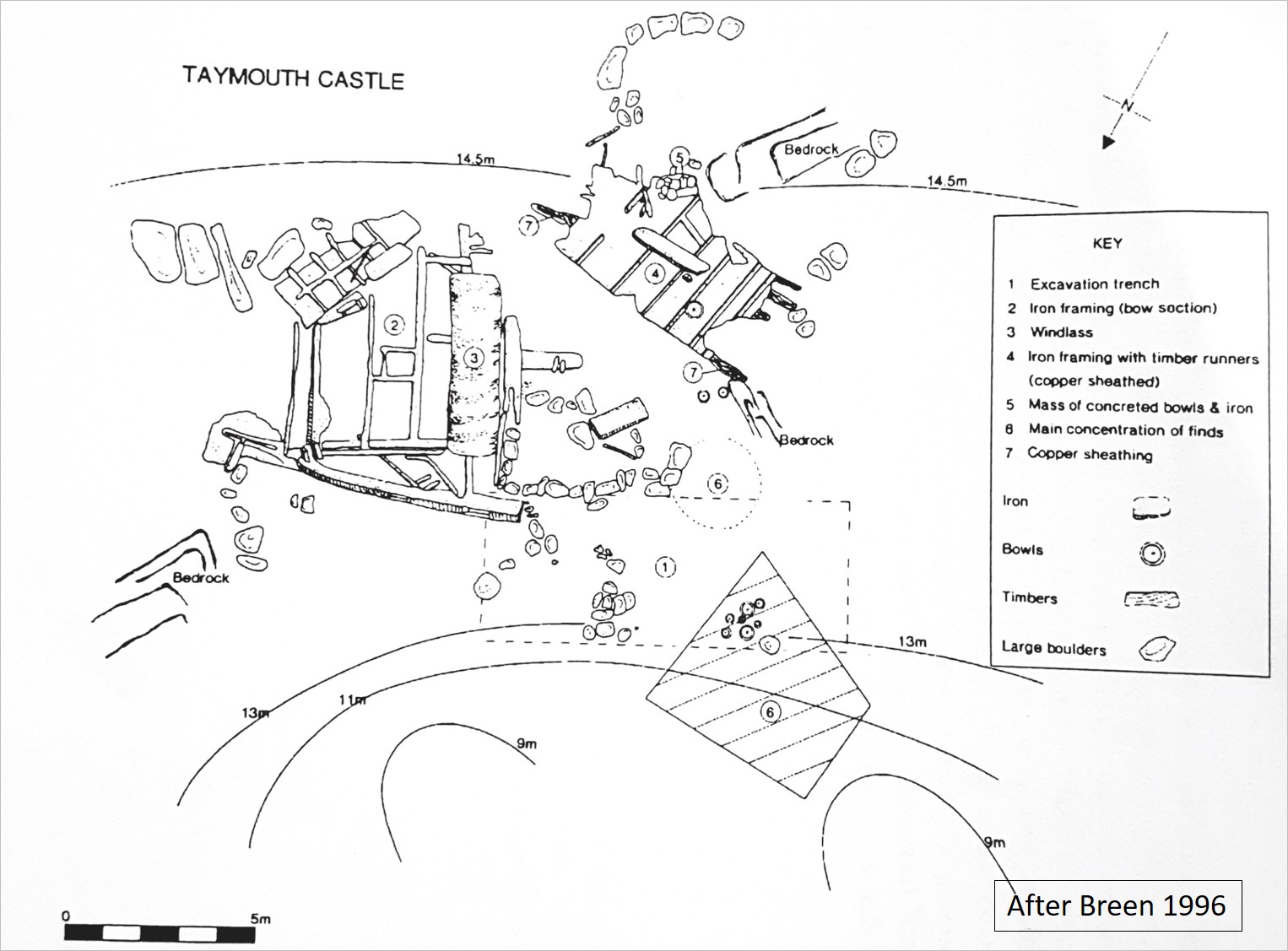Date of loss 05/01/1867. A full-rigged composite ship of iron and wood, 52m in length. Built in 1865 in Glasgow. En route from Glasgow to Singapore with a general cargo of spirits, beer, cotton, pottery and saddlery. One of the castle line of ships. Stranded and lost with all hands. Eleven bodies were recovered and are said to have been buried in a mass grave near Layd; a large mound is said to be still visible. Relocated by sports divers in the 1970s and ‘heavily plundered’. In 1995 a survey and short excavation under license from NI Gov was carried out by Management for Archaeology Underwater (MAU) in order to obtain a representative sample of the cargo (see Breen 1996; Breen and Forsythe 2004). The wreck lies in 15m of water, 70m offshore at the base of steep boulder cliffs. This is an important wreck and a potential candidate for protection. Please do not carelessly damage the site further. Condition assessments would be welcomed by the Historic Environment Division (see ‘Record Heritage’).